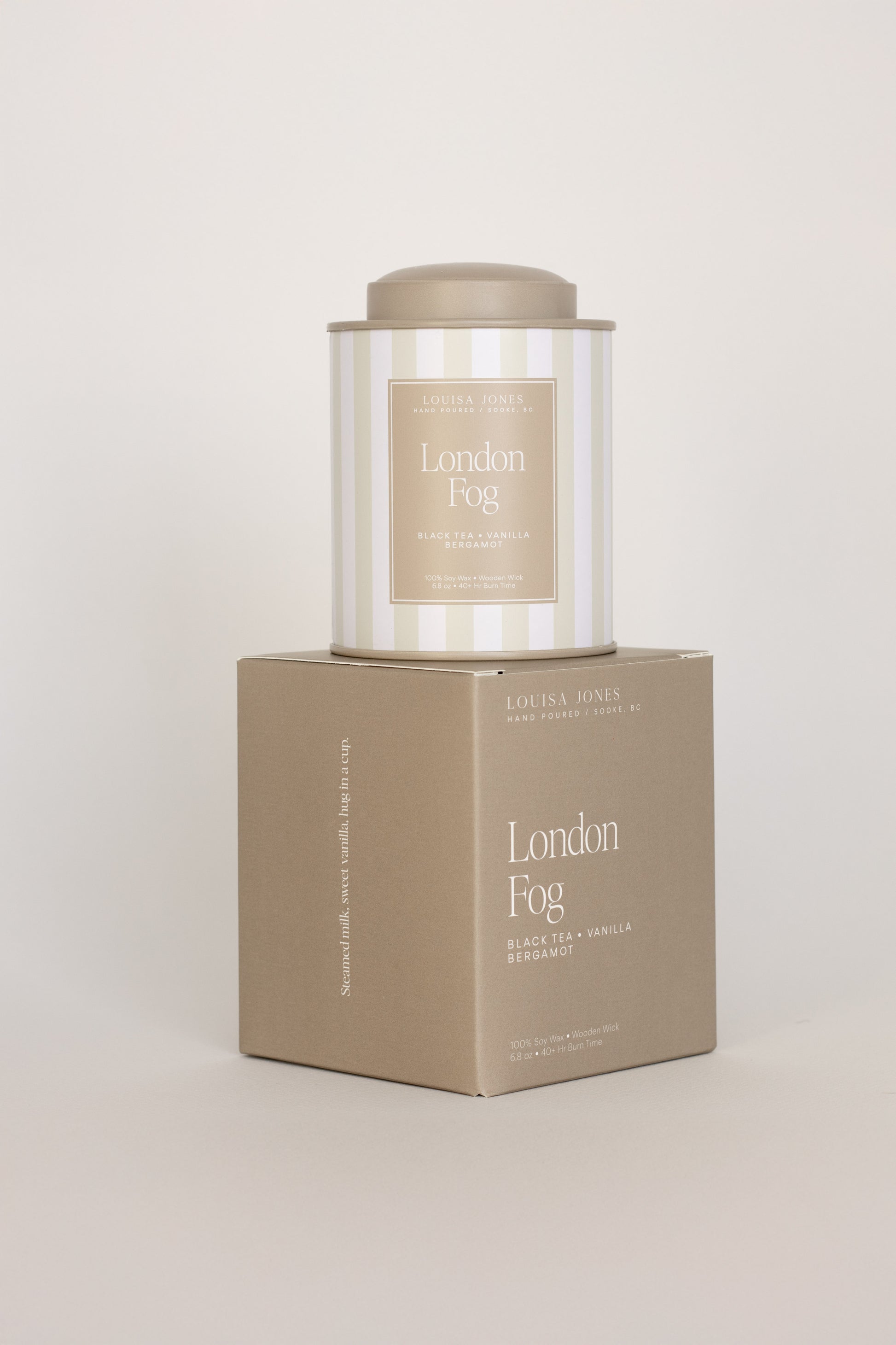 Love this candle, had to repurchase it. A true London fog scent that is not too overpowering. Very clean burning and lasts well over 40 hours burn time. Love the tin design.